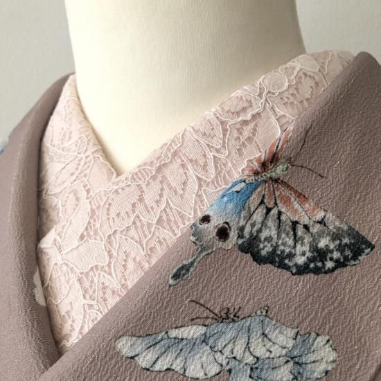 こちらの半衿は、シェイドレース帯揚げのピーチ・スモーキーモーブ・モノトーン(ブルーグレー)とペア使いも出来ます。