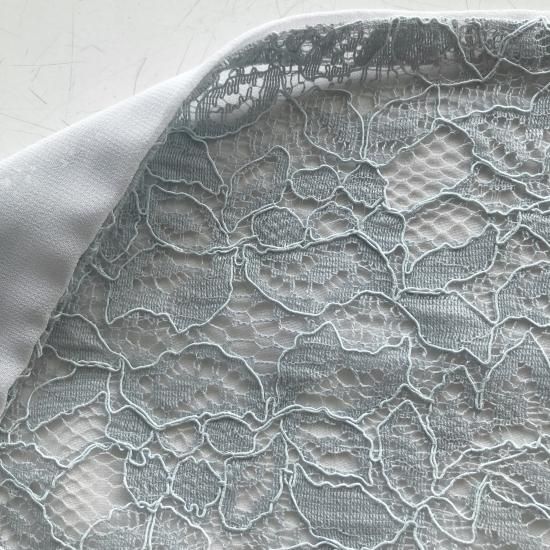 繊細なコードレースにシフォン生地を裏打ちして、丁寧に仕上げました。